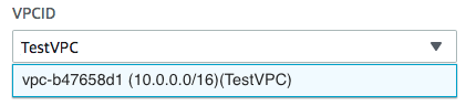 在创建包含 Amazon 特定的参数类型的堆栈时,CloudFormation 控制台会提供这些参数的有效值的下拉列表。根据参数类型,您可按 ID、名称或 Name 标签的值来搜索值。例如,利用 AWS::EC2::VPC::Id 参数类型,您可搜索特定的 VPC ID,如 vpc-b47658d1。如果使用一个名称(如 Name:TestVPC)标记 VPC,则也可以搜索 TestVPC。目前,您只能搜索带有 Name 键的标签值。