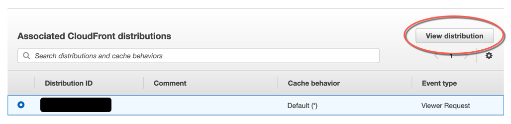 成功后,您会在页面顶部看到一个标题,其中显示函数名称已成功关联,且关联的 CloudFront 分配表显示了关联的分配。在验证函数是否正常工作之前,请等待几分钟以便关联的分配完成部署。要检查分配的状态,请选择关联的分配,然后选择 View distribution(查看分配)。