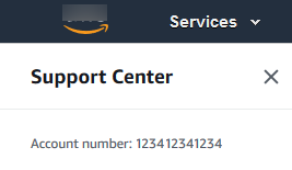 要使用 Amazon Web Services Management Console查找 Amazon 账户 ID 号,请在右上角的导航栏上选择 Support (支持),然后选择 Support Center (支持中心)。账户号 (ID) 将显示在左侧的导航窗格中。