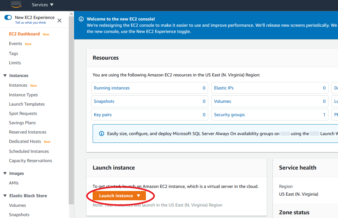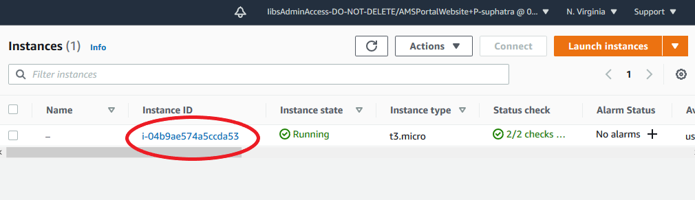 在 Amazon EC2 控制台上,导航到您的实例,看看您刚刚创建的实例是否正在运行。如果是,选择实例.