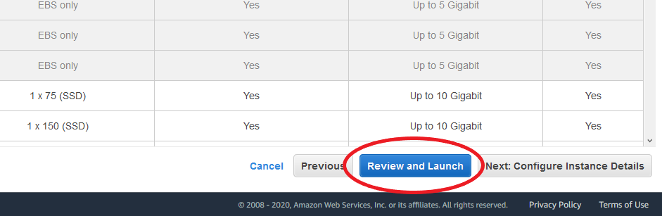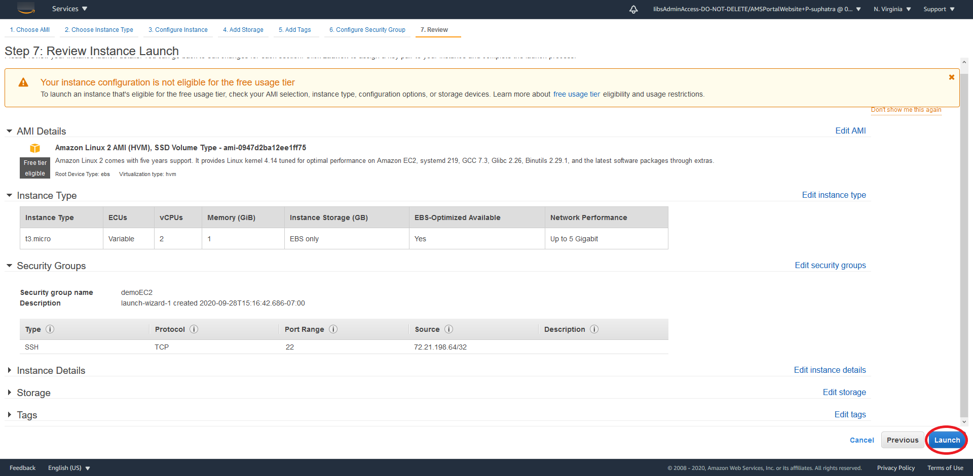 选择核查和启动,这将允许你跳到控制台的步骤 7:核查实例启动页面。