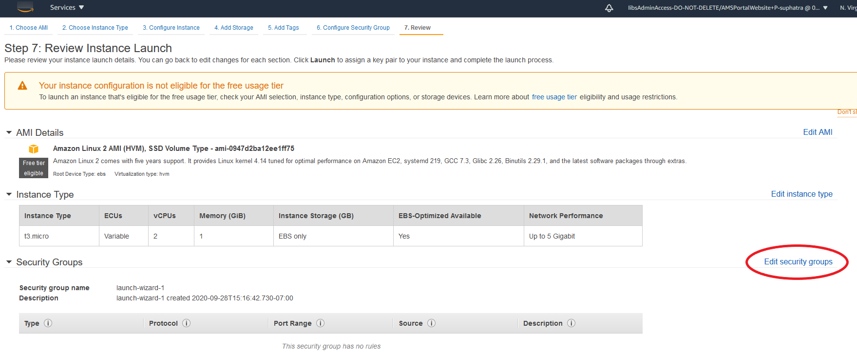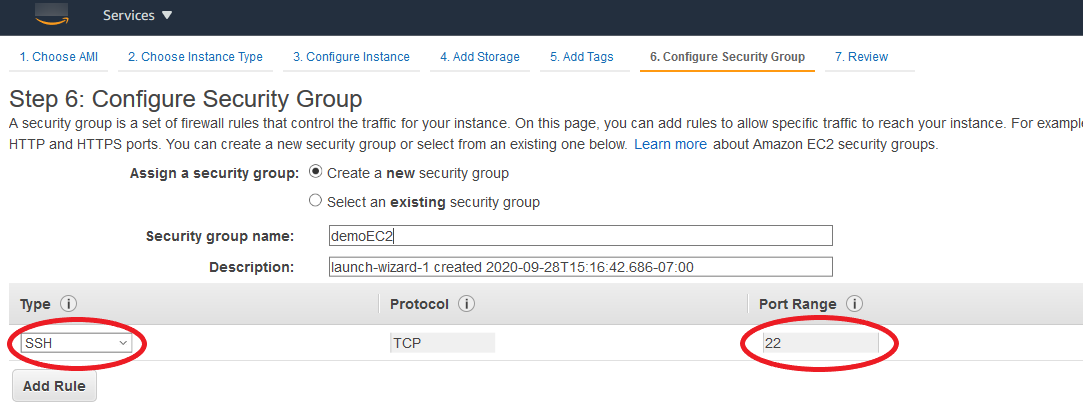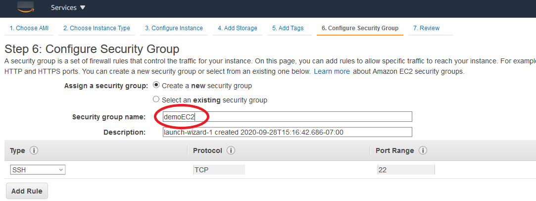 这将默认为创建新的安全组. 在安全组名称字段中,write