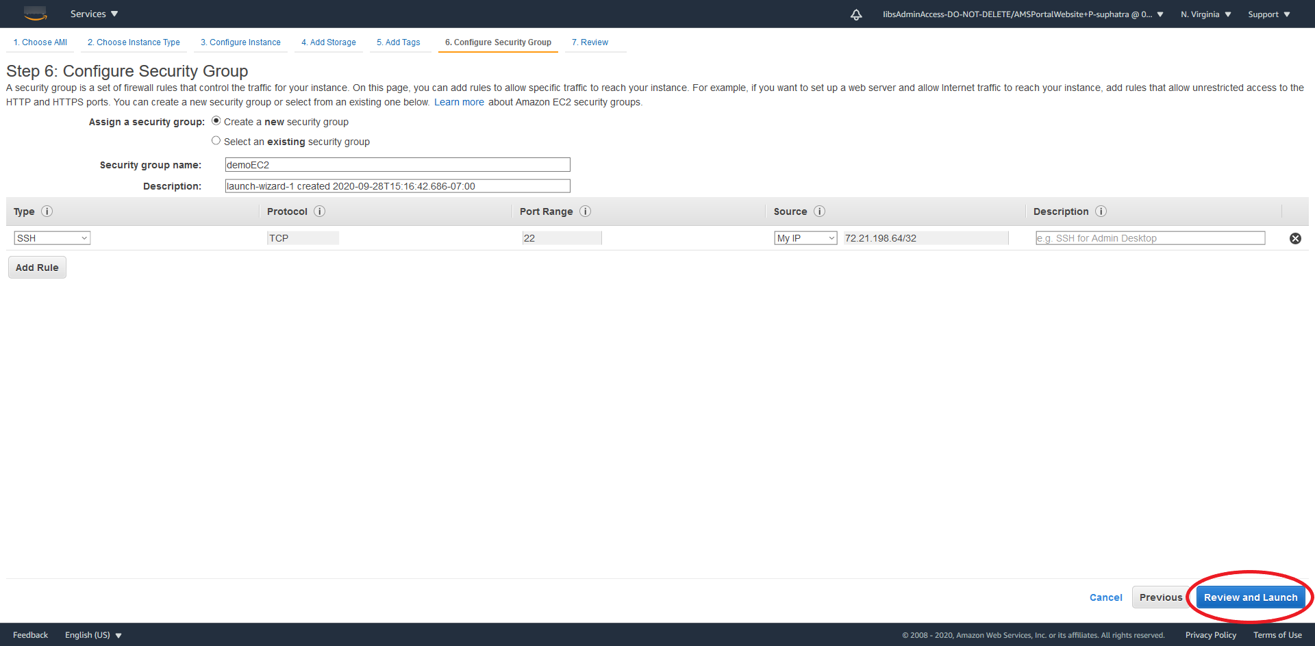 NOW 选择核查和启动. 现在,您应该看到在 demoEC2 安全组内容安全组部分。