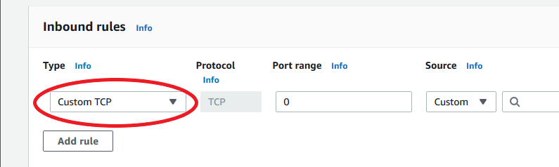 对于 Type(类型),选择 Custom TCP Rule(自定义 TCP 规则)。