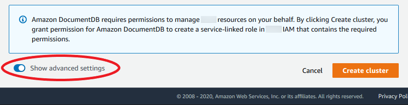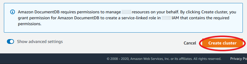 在配置 Amazon EC2 实例的同时,您将创建您的 Amazon DocumentDB 集群。