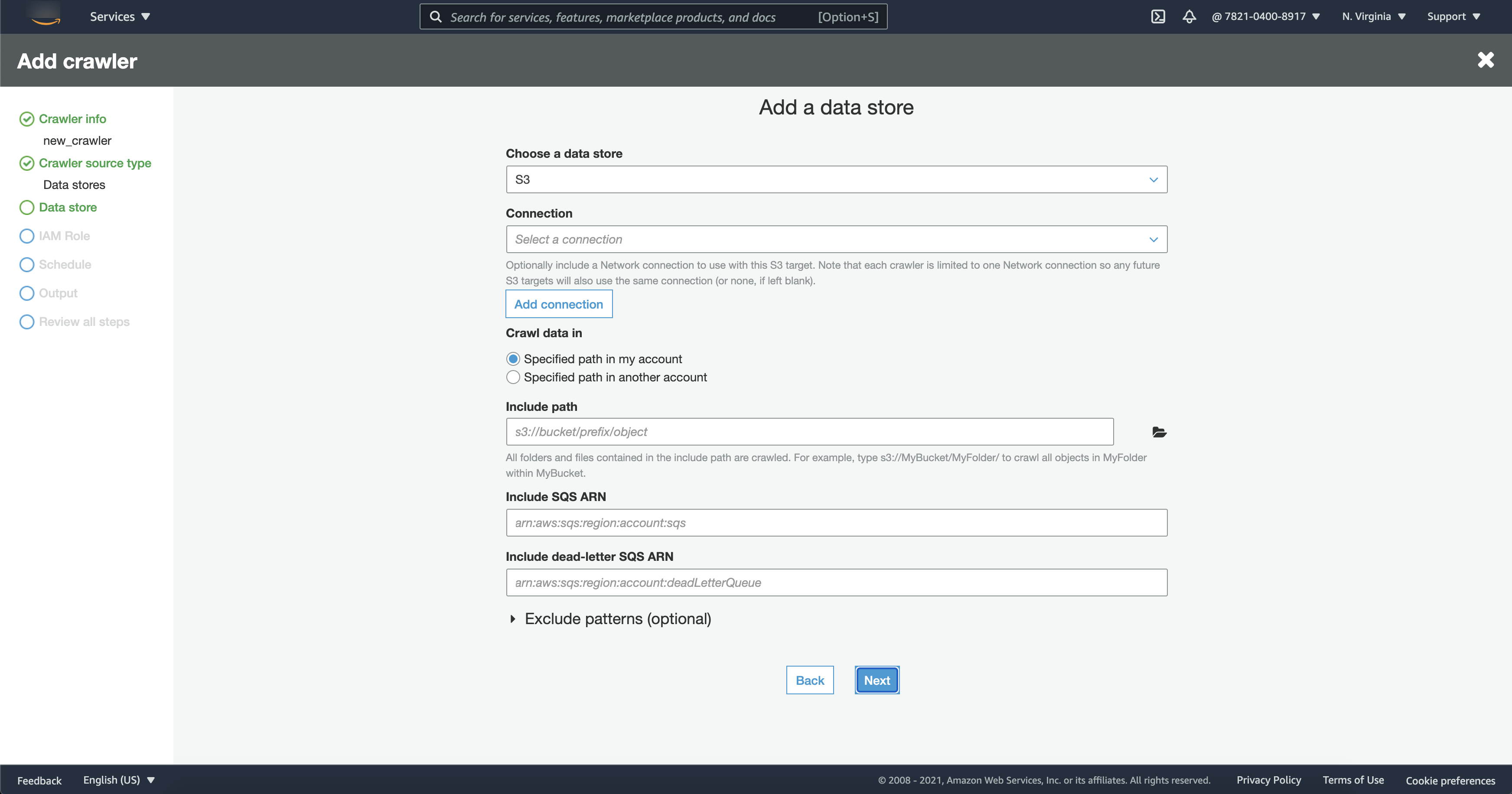 folder_name,例如“test1”),即识别的存储桶中的路径。准备爬网程序名称 (