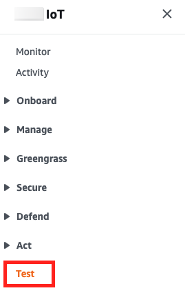 ,在左侧菜单中选择 Test (测试),然后选择 MQTT client (MQTT 客户端)。