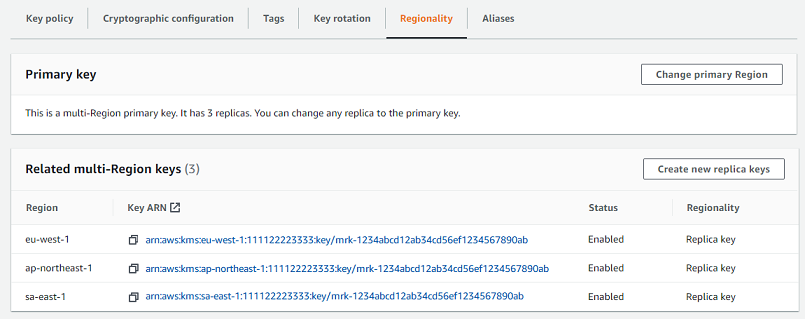 此操作将在新的浏览器选项卡中打开副本密钥的密钥详细信息页面。控制台设置为副本密钥区域。