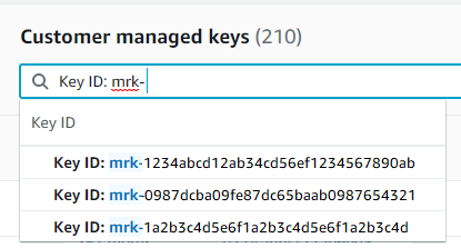 您还可以对您的客户托管密钥表进行排序,并筛选其中是否有独特的 mrk- 密钥 ID 前缀。