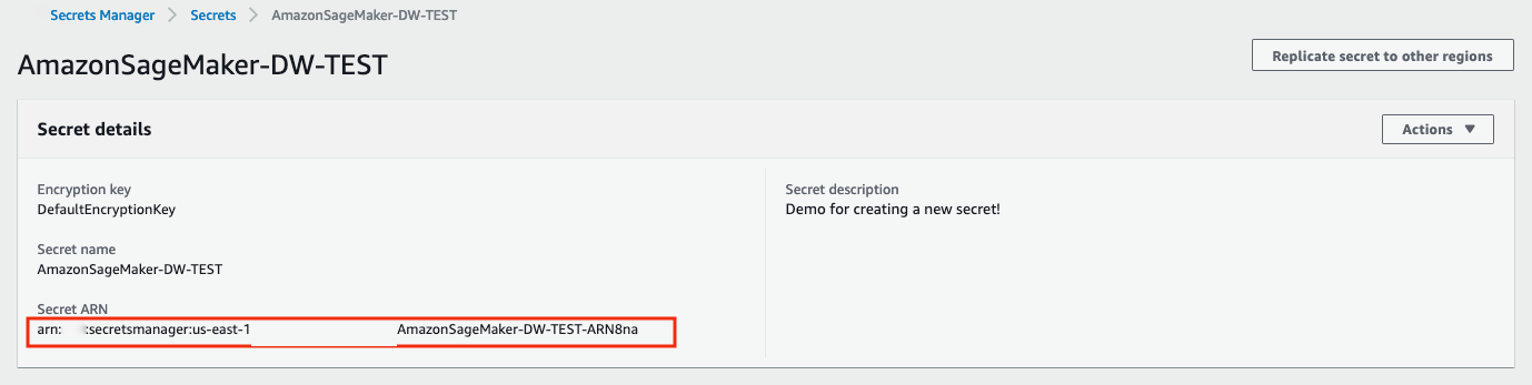 (可选)对于KMS 密钥 ID,指定的 ARNAmazon KMS密钥或别名。下图显示了在哪里可以在Amazon Web Services Management Console.