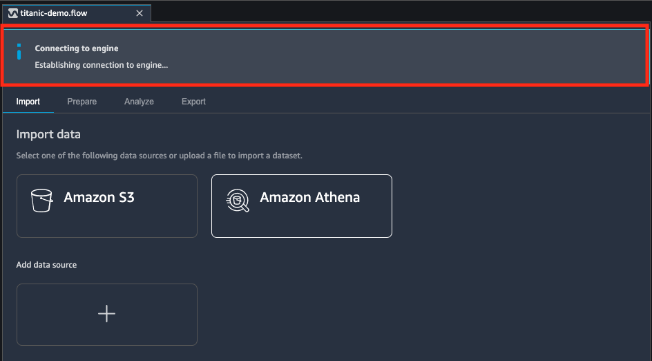 在存储库的导入数据屏幕上,选择Amazon Athena.