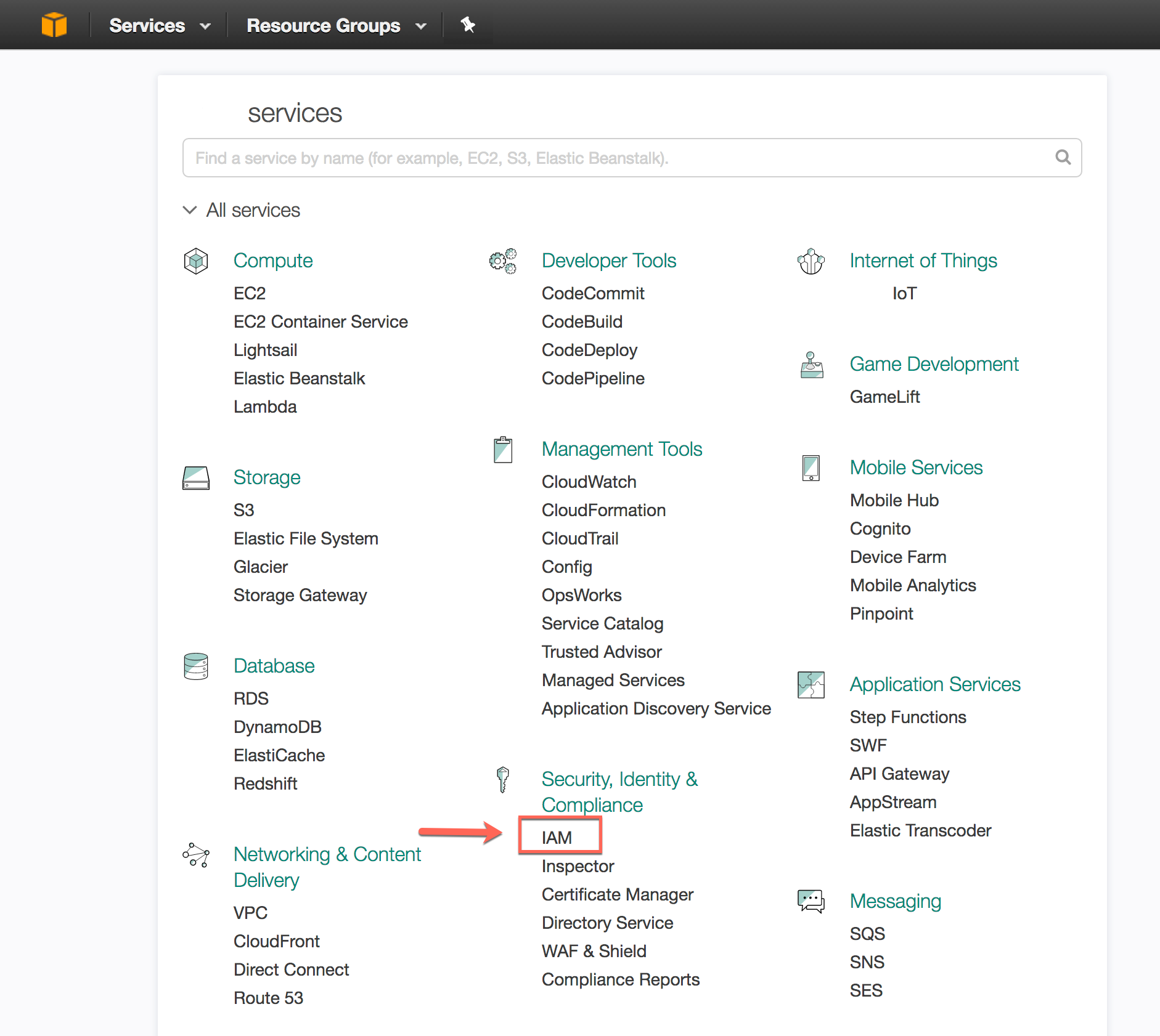 登录 Amazon Web Services Management Console,然后通过以下网址打开 IAM 控制台:https://console.aws.amazon.com/iam/