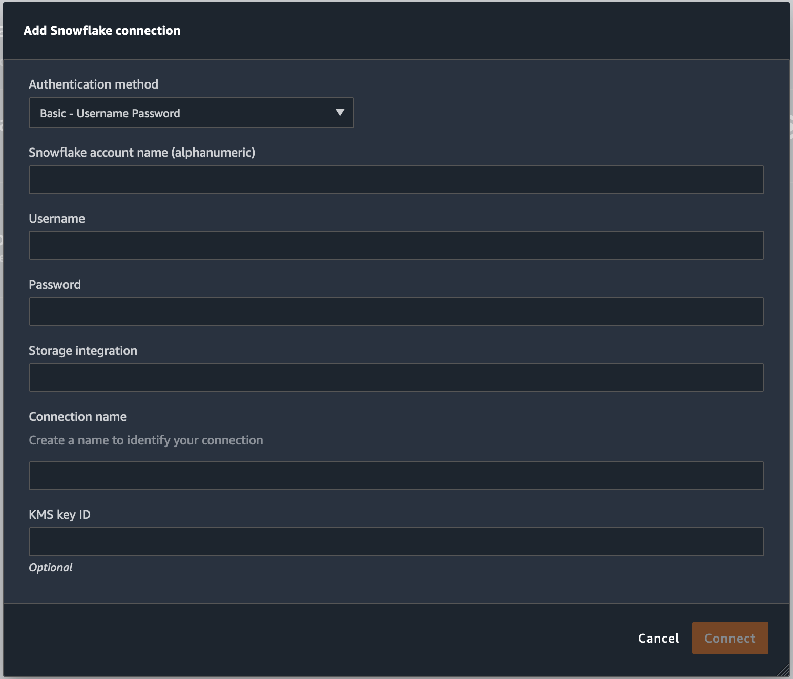 privatelink-account-name(来自的)设置雪花 PrivateLink 集成步骤)进入Snowflake 账户名称(字母数字)字段,而不是普通的 Snowflake 帐户名称。其他一切都保持不变。