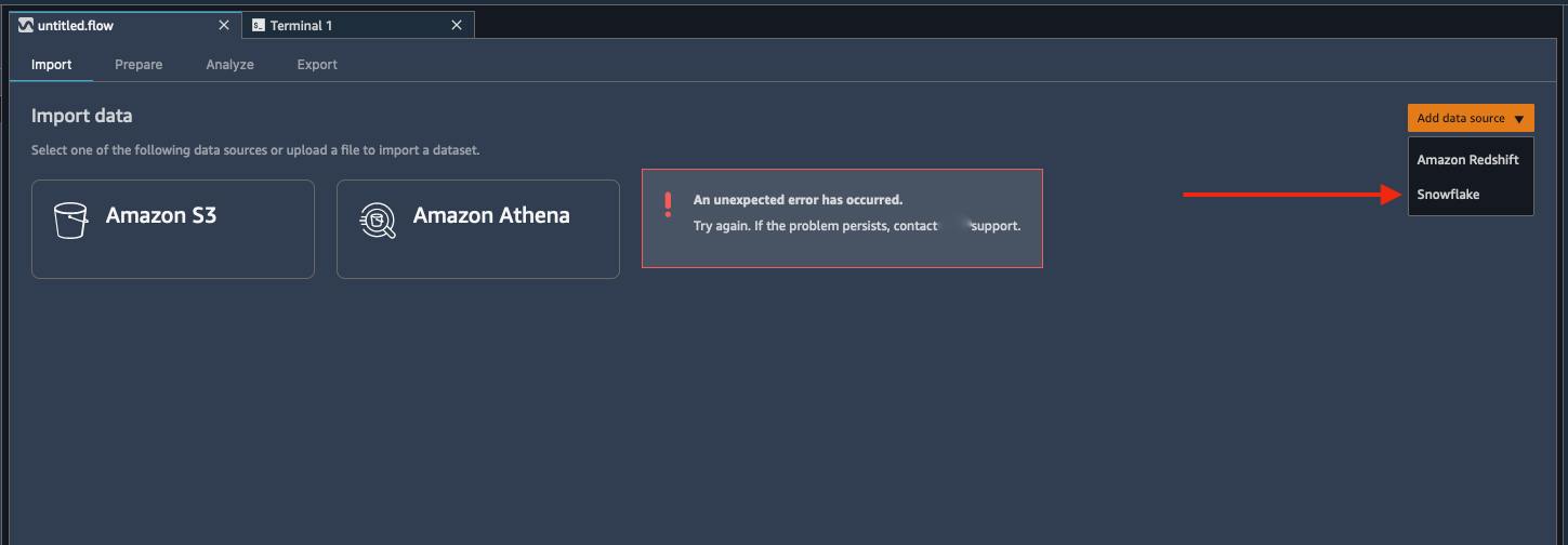 你可以使用亚马逊 SageMaker Data Wrangler 从以下导入数据数据源:Amazon Simple Storage Service (Amazon S3)、Amazon Athena、Amazon Redshift 和 Snowflake。您导入的数据集最多可以包含 1000 列。