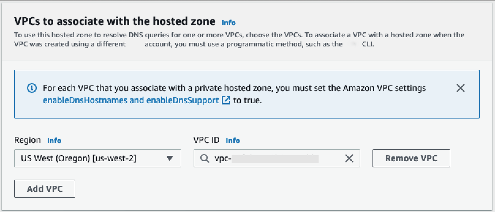 从该地区的 VPC下拉列表中,选择您在之前所有步骤中使用的 VPC ID。