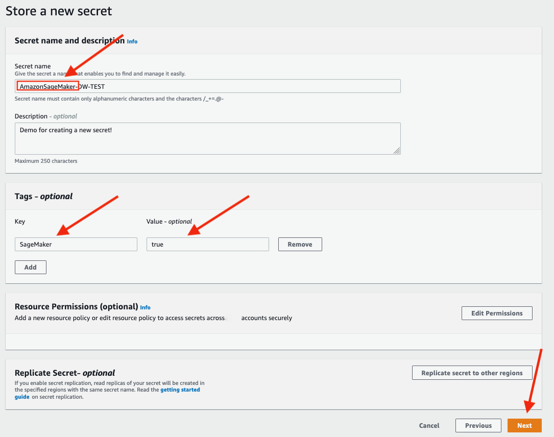 数据 Wrangler 将你的 JDBC URL 存储在Amazon Secrets Manager. 你必须给你的亚马逊 SageMaker Studio IAM 执行角色使用 Secrets Manager 的权限。可以使用以下过程授予权限。
