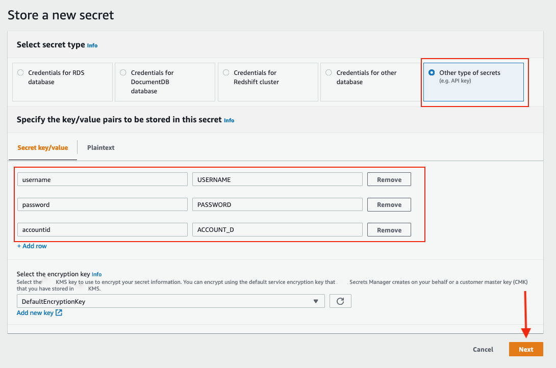 您可以指定Amazon KMS密钥使用你的钥匙 ARN 或 ARNAmazonaccount.