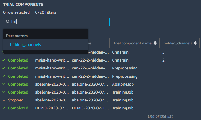 Amazon SageMaker Studio 试验组件列表称为排行榜。你可以使用排行榜来比较你的试验和实验。排行榜列出了试验的属性,例如试验状态、调试器状态、标签、指标、超参数以及输入和输出构件。