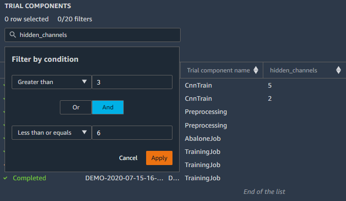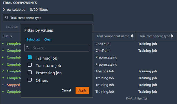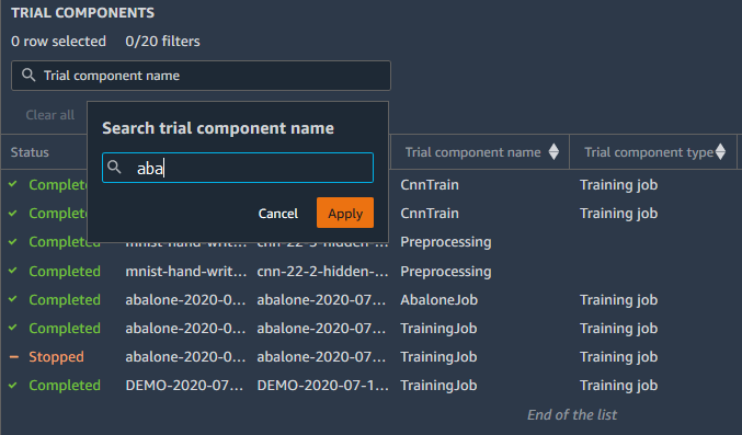 您可以搜索并创建多个筛选器,以便在实验浏览器中显示实验、试验和试验组件的子集。搜索和筛选列表后,您可以在排行榜中打开实体并搜索其他属性。