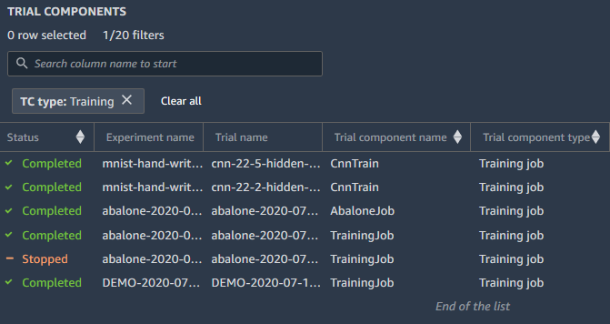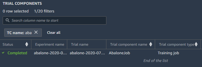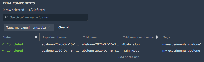 您可以使用实验浏览器搜索实验、试验和试验组件。选择实体后,您可以在亚马逊上搜索这些实体的属性 SageMaker 排行榜。