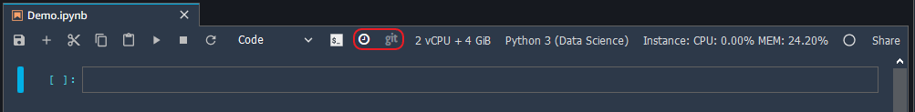 如果笔记本是从 Git 存储库打开的,您可以查看笔记本和上次 Git 提交之间的差异。