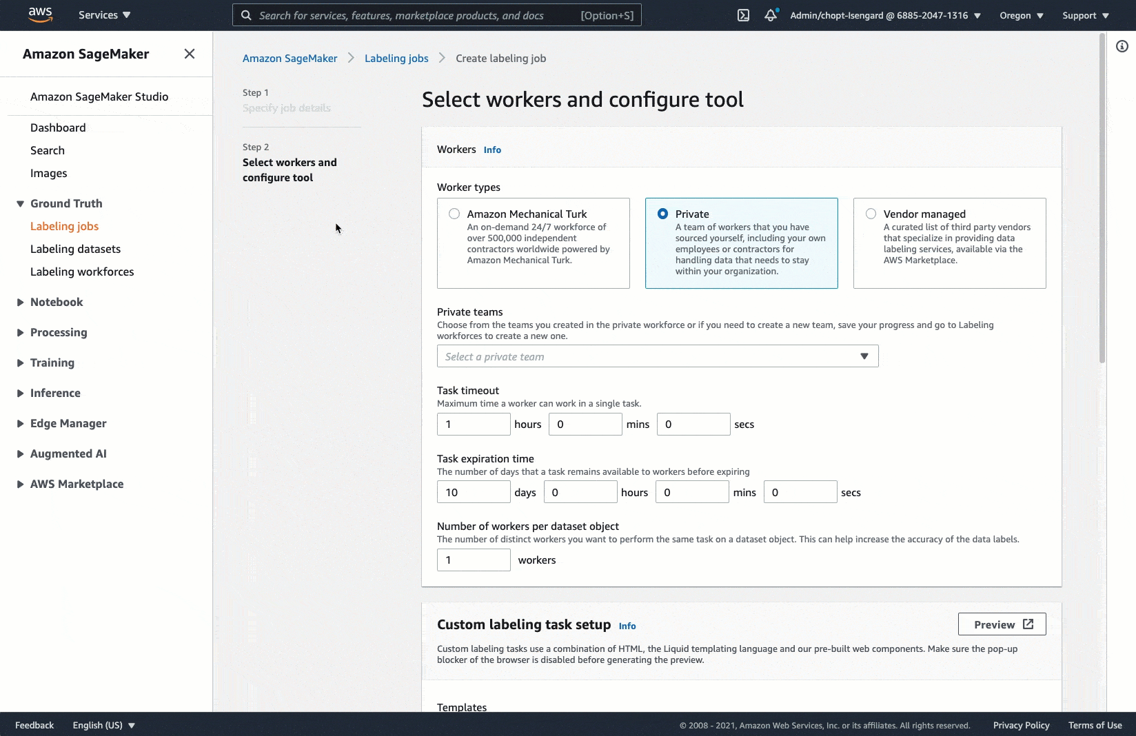 按照中的说明操作创建标记作业(控制台)然后选择Custom (自定义)用于标签作业任务类型.
